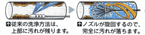 建物の排水管を高圧洗浄工法 により詰まりの除去や清掃を行います。 また、ファイバーカメラを使用しての管内部の調査にも対応します。 |